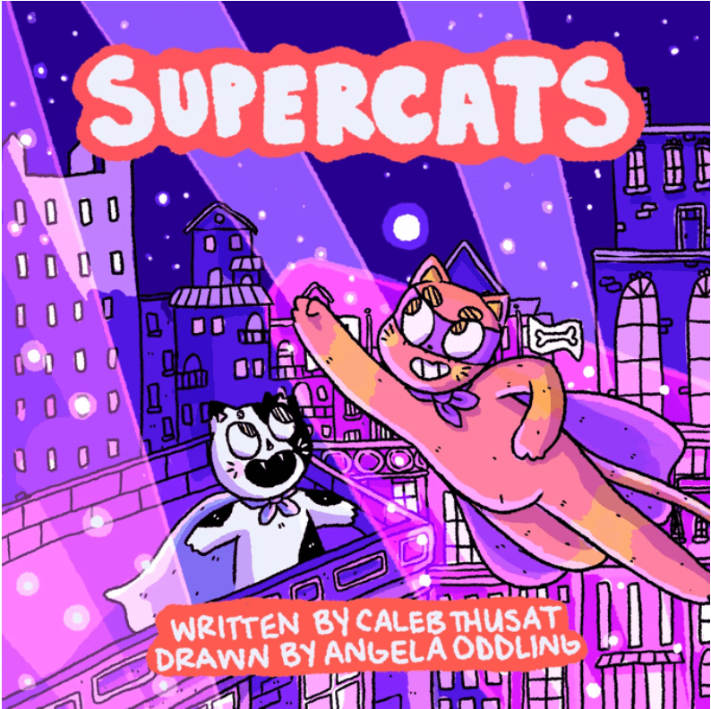 Supercats is a children’s book series that introduces kids to reading through comics! Mewow is a superhero cat and Ohno is a tailess cat who wants to be just like her. Each book steps up in diffficulty from sounds to simple word repetition, to ryhming, and finally an early reader comics featuring all of the elements that were introduced over the first 3 books. The Art style feels both familiar and new. It’s Hello Kitty meets Dog Man for children ages 0-8.